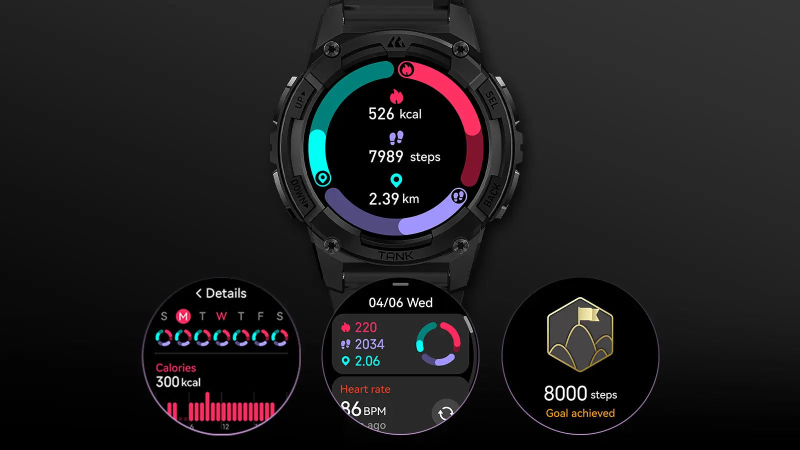 Set your daily goals for calories, distance, and steps on the KOSPET FIT App, to embrace healthy living on a day-to-day basis. As you progress towards or meet your goals, you will receive real-time reminders and medals on KOSPET TANK S2 to motivate you to stay on course.