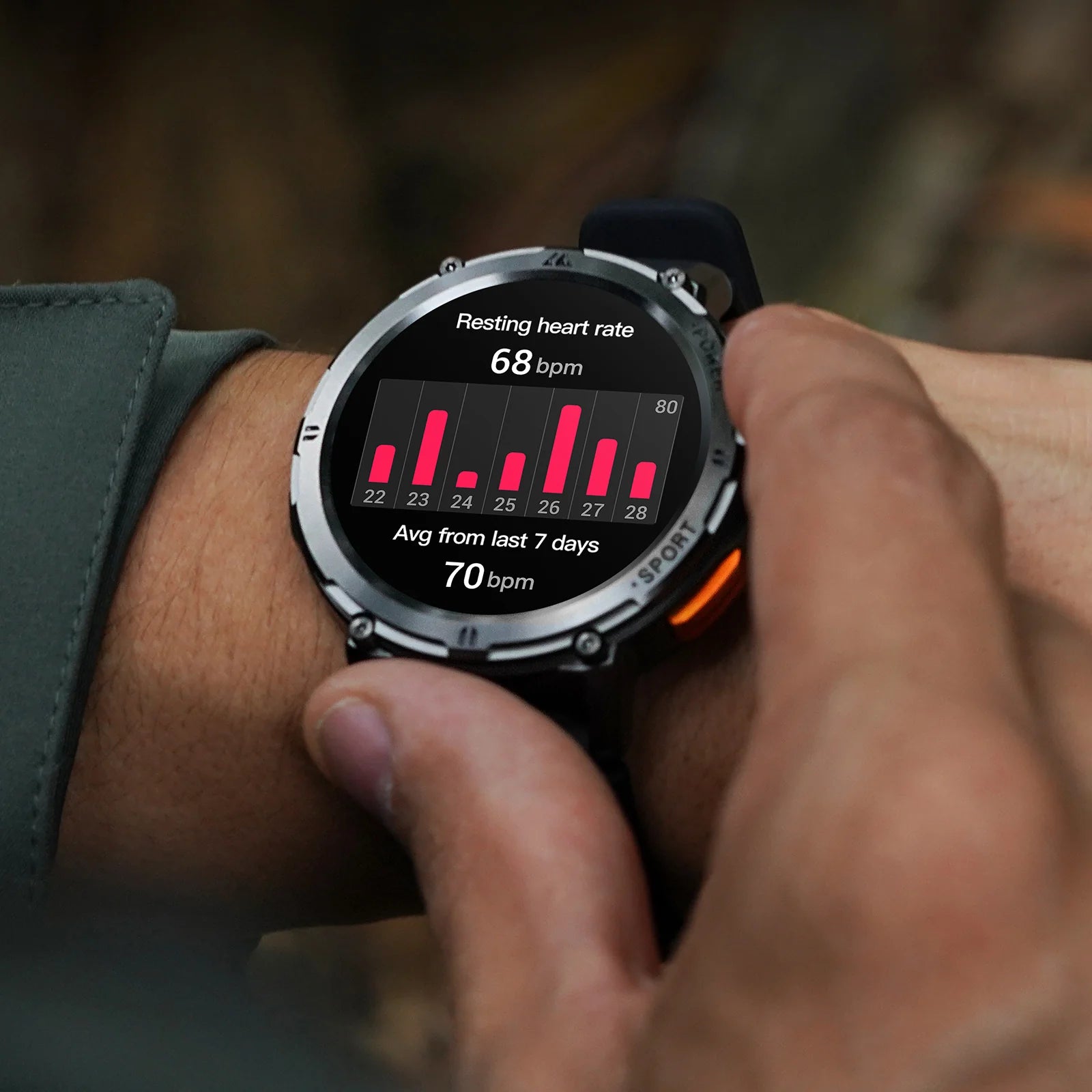 KOSPET TANK M2 tracks and assesses your sleep in various dimensions, including stages of sleep and heart rate. The smartwatch also enables accurate analysis of your sleep quality and generates comprehensive data accordingly, even during short naps.