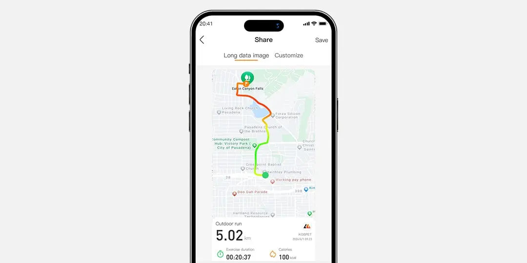 Share your physical and workout data via the KOSPET FIT App. Get a deeper insight into your outdoor workout with high-precision route mapping and measurements of distance, pace, calorie consumption, etc.