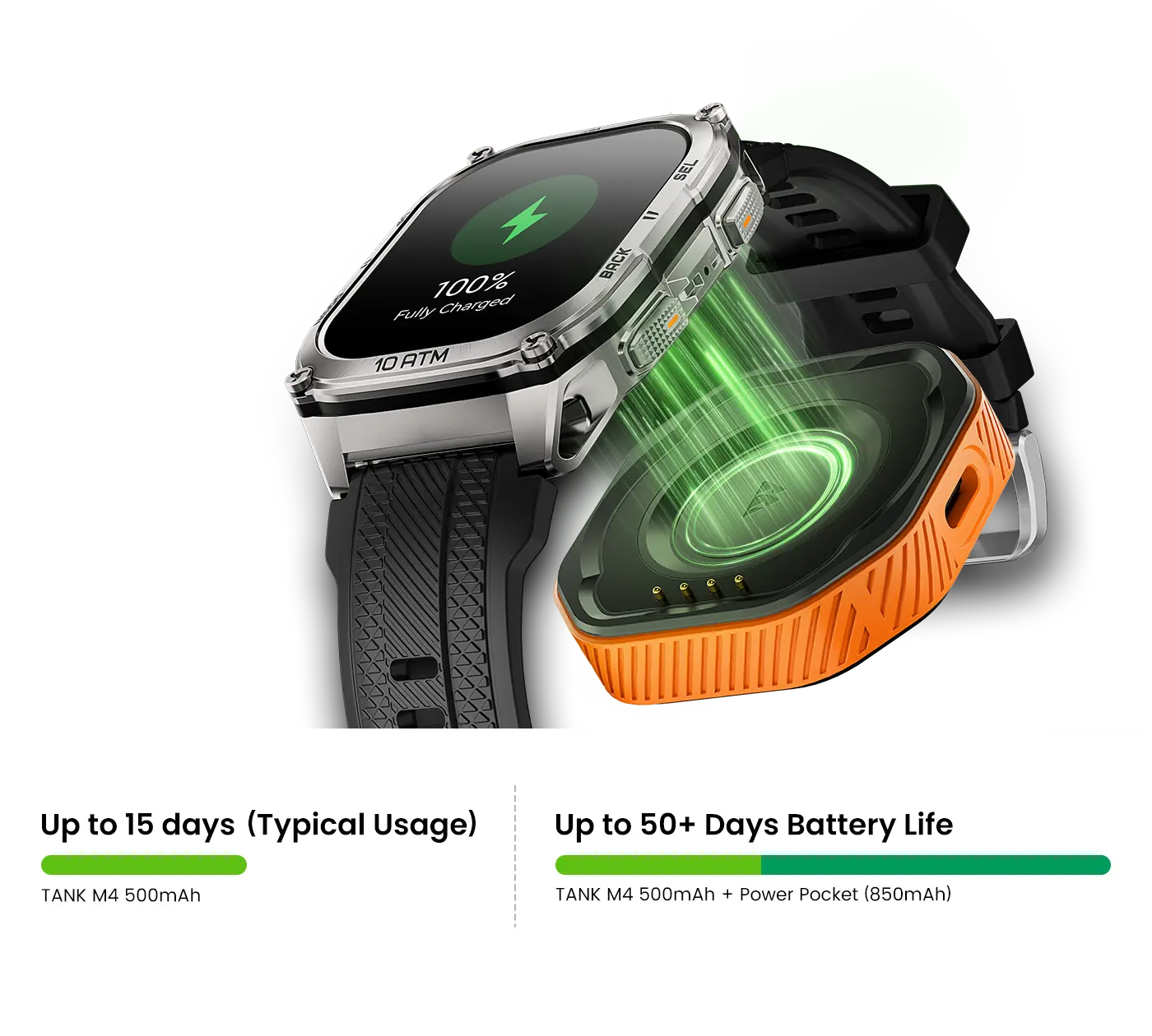 Extend Your TANK M4’s endurance with the ultra-compact Smartwatch Power Pocket.